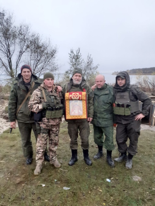 Мы с Юрием Викторовичем встретились уже как родные после совместных поездок на боевые позиции в октябре. Первым делом пошли помолиться перед образом «Песчанской» иконы Божией матери, с которым посещали донецкую линию боевого соприкосновения и, конечно, помолиться перед нашей чудотворной иконой Святого Царя Мученика и Страстотерпца Николая II. Молились, чтобы Господь и Святой Государь открыл нам путь и дал возможность посетить боевые позиции на Херсонщине, о чём мы задумывались ещё в октябре.