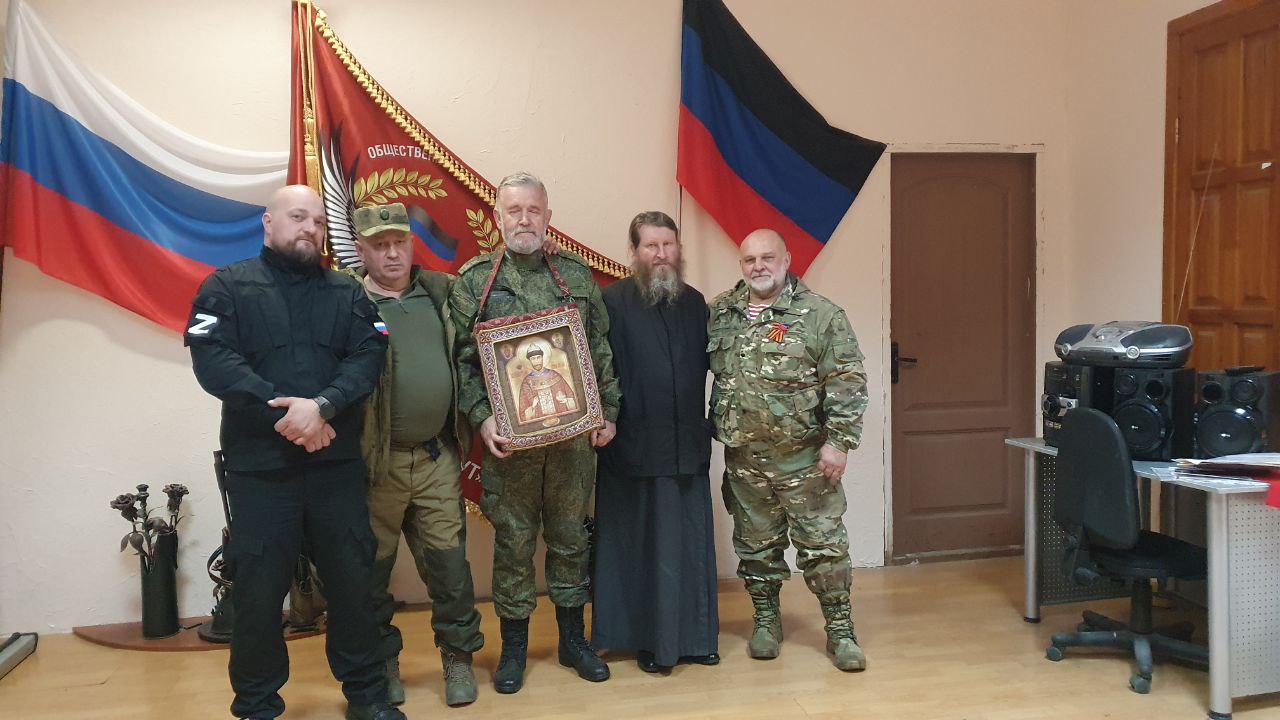 Икона святого флотоводца. После построения, молебна и помазания миром от мироточивых икон было много интересных встреч. В частности вы познакомились с удивительным воином чистокровным греком Симосом, (на фото вверху он держит икону св. воина Федора). Симос вспомнил историю военной помощи грекам в освобождении остров Корфу нашим святым адмиралом Фёдором Ушаковым. Православный русский воин греческого происхождения с любовью и трепетом взял в свои руки икону святого воина-флотоводца с молитвенной благодарностью за внимание и память к истории его Родины-Греции. За свободу Донбасса в бригаде воюют представители многих национальностей, проживающих на донецкой земле. Это одна из лучших бригад по сложности и по выучке. Нам было радостно поддержать достойных воинов.