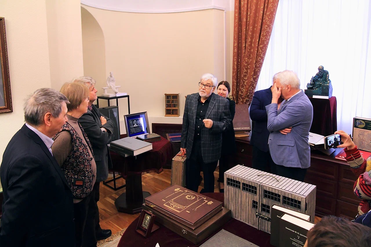 Василий Евгеньевич подробно рассказывал о том, как создавался представленный в президентской библиотеке трёхтомник «Евангелие Достоевского».