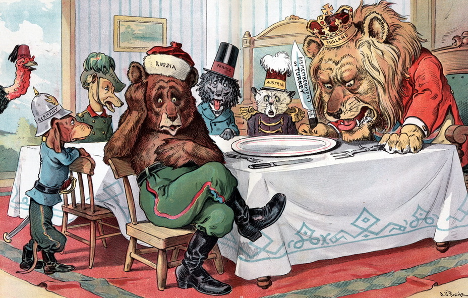 Ассоциировать медведя с образом России, причём в отрицательно плане, придумали в Великобритании, где в XVIII веке была уже очень популярна политическая карикатура. Картинки выпускались на злобу дня огромными тиражами, порой, сериями, с развитием сюжета, – этакие предшественники комиксов, а затем и комедийных политических шоу. Продукция пользовались популярностью. Любое событие находило отклик: перипетии русско-турецких войн, польских дел, наполеоновских войн. Русские выставлялись всегда в негативе и часто в образе медведя. Страшного и ужасного.