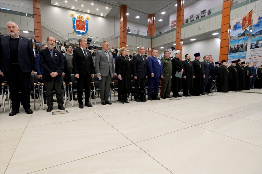 Было зачитано приветствие главы Духовного собрания мусульман России муфтия Альбира Крганова. С приветственным словом выступил глава департамента Федерации еврейских общин России по взаимодействию с ВС РФ, МЧС и правоохранительными органами, главный военный раввин России Аарон Гуревич.