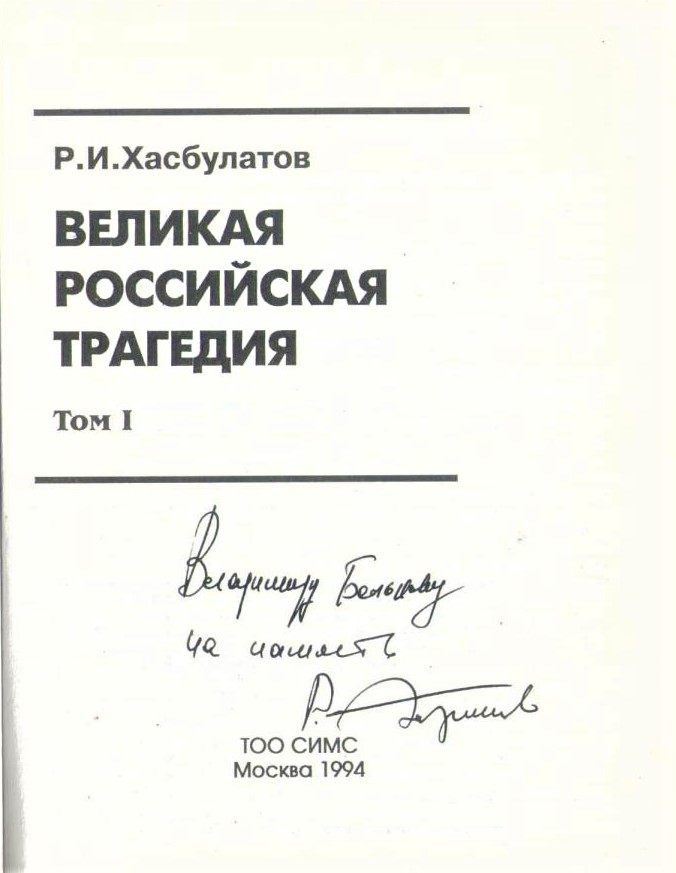 Нынешней осенью исполнится 30 лет народному сопротивлению ельцинскому госперевороту периода сентября-октября 1993 года. И несколько дней назад завершился земной путь Руслана Имрановича Хасбулатова, московского профессора-экономиста, волею судьбы вознесённого на Олимп власти, последнего Председателя Верховного Совета России и Председателя межпарламентской Ассамблеи Содружества Независимых Государств, с конституционными полномочиями выше президентских. Для лишения его этих полномочий 4 октября 1993 года понадобились танки. До конца жизни он нёс груз личной ответственности за исход противостояния «Ельцин — парламент» и одну из своих книг впоследствии назвал «Великая российская трагедия».