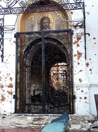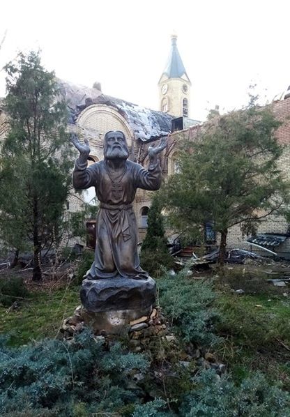 Вместе с монахами посещаем место упокоения старца Зосимы, с нами и матушка Варвара, она счастлива. Иноки Сергий и Иустин читают молитву об упокоении души старца Зосимы, и мы ставим зажжённую свечу. Ракеты зловеще падают всё время, пока мы находимся в Покровском монастыре. В огромных монастырских воротах разрушены святыни, пострадали монашеские кельи, библиотека, монастырский дом, подсобные помещения. Вдалеке виднеется церковь Святого Николая, но подходить к ней опасно.