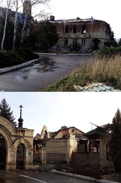 Наша военная машина, буквально, врывается в пределы святыни. Она почти полностью разрушена: разрушена церковь, которая когда-то была гордостью и символом красоты православной Украины. Именно здесь жил знаменитый схиархимандрит Зосима.