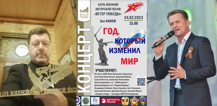 24 февраля в Музее Победы прошёл концерт Клуба военной авторской песни «Ветер Победы», посвящённый годовщине начала Специальной военной операции.