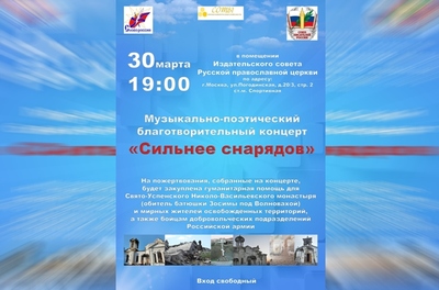 Клуб «Словороссия» совместно с журналом «Соты» при поддержке Союза писателей России и православного прихода Храма Смоленской Иконы Божией Матери в Фили-Давыдково проводит литературно-музыкальный благотворительный концерт «Сильнее снарядов».