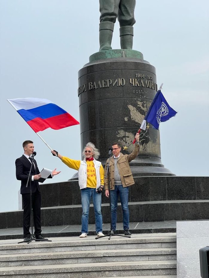 В Нижнем Новгороде, возле памятника прославленному лётчику Валерию Чкалову, где Ока впадает в Волгу, стартовала экспедиция, хочу это подчеркнуть, казачьего полковника Валентина Алексеевича Ефремова.