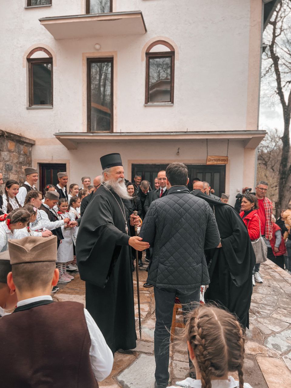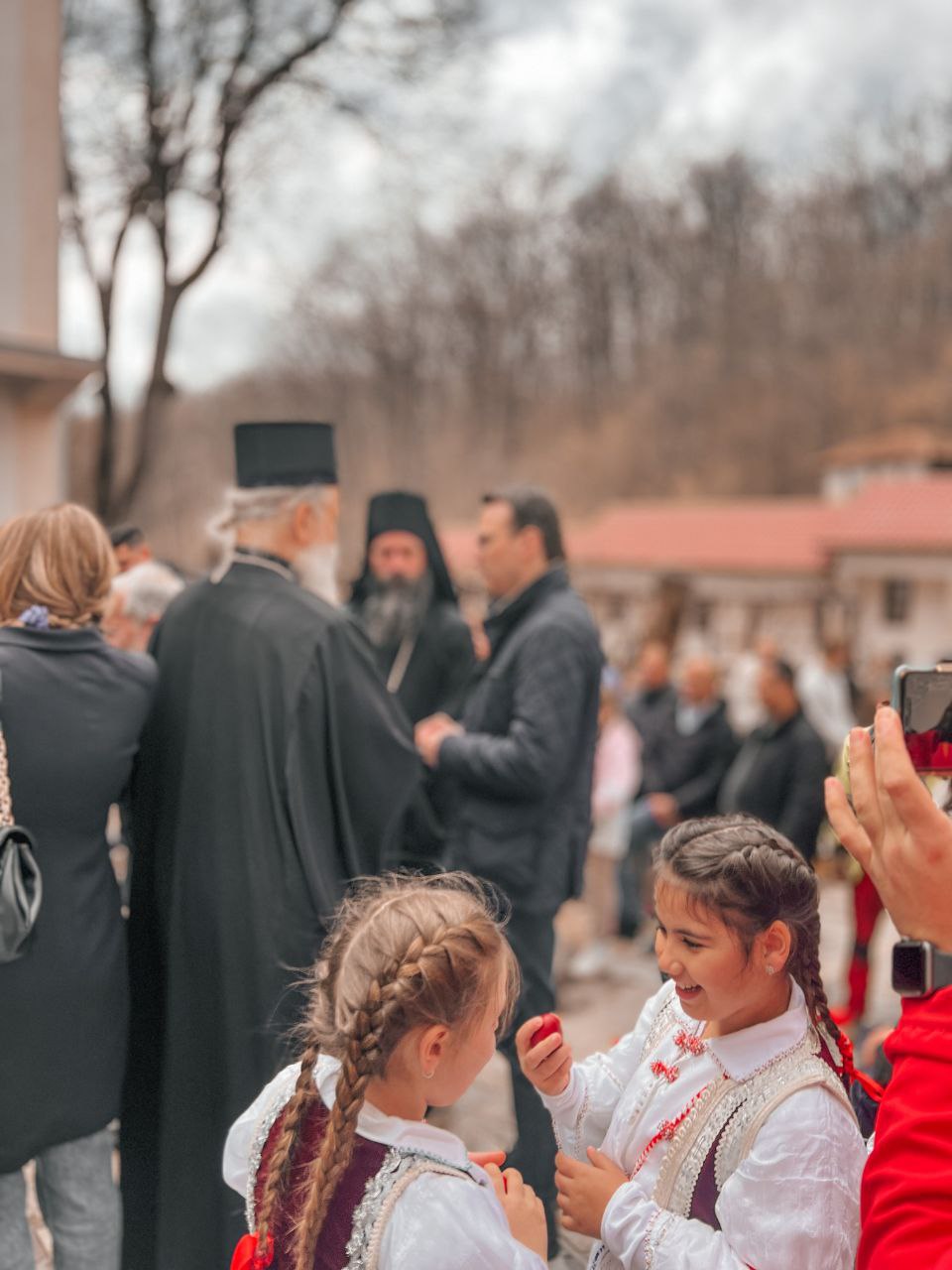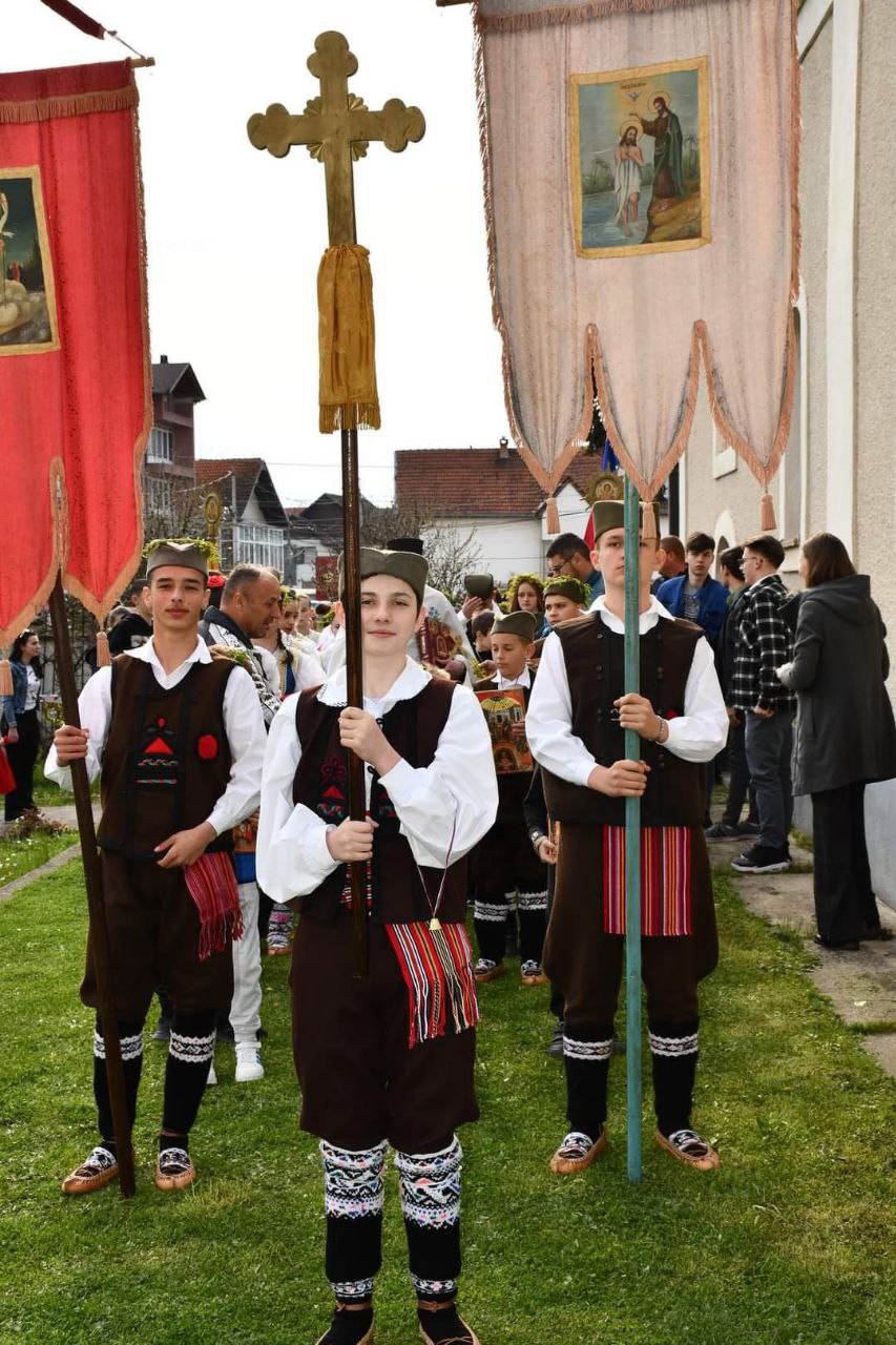 В Косовском Поморавье местные жители вместе со своим любимым владыкой Иларионом, епископом Новобродским, встречали епископа Рашко-Призренского Феодосия и Косовско-Метохийского, в полном соответствии с давними традициями гостеприимства, присущими нашему краю. Особенно волновались самые младшие – детям не терпелось показать владыке разученные танцы и по возможности вовлечь его в хоровод, и, да, немного похвастаться особыми пасхальными нарядами родного края.