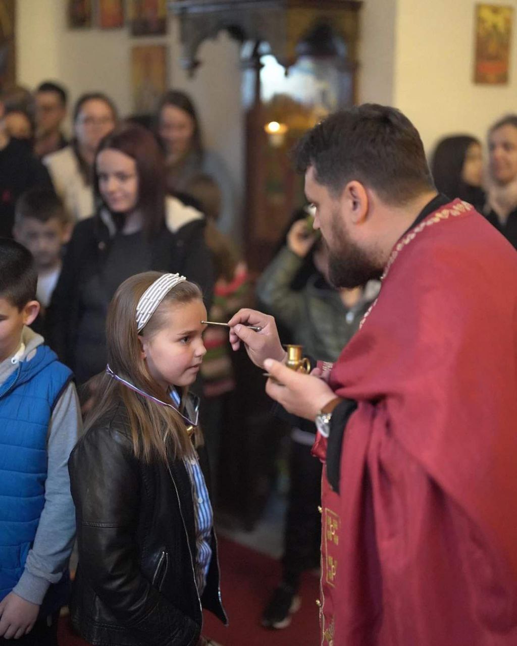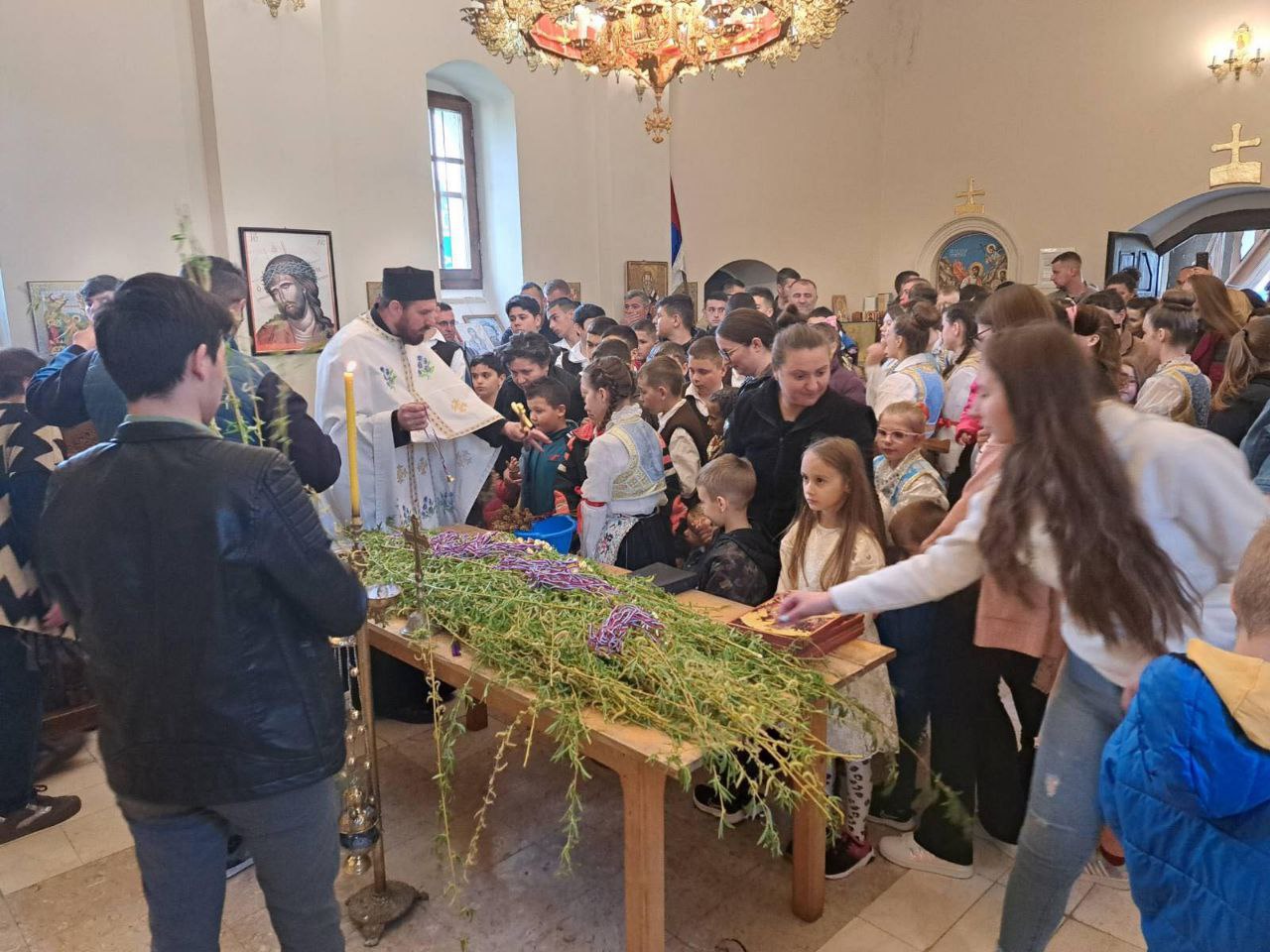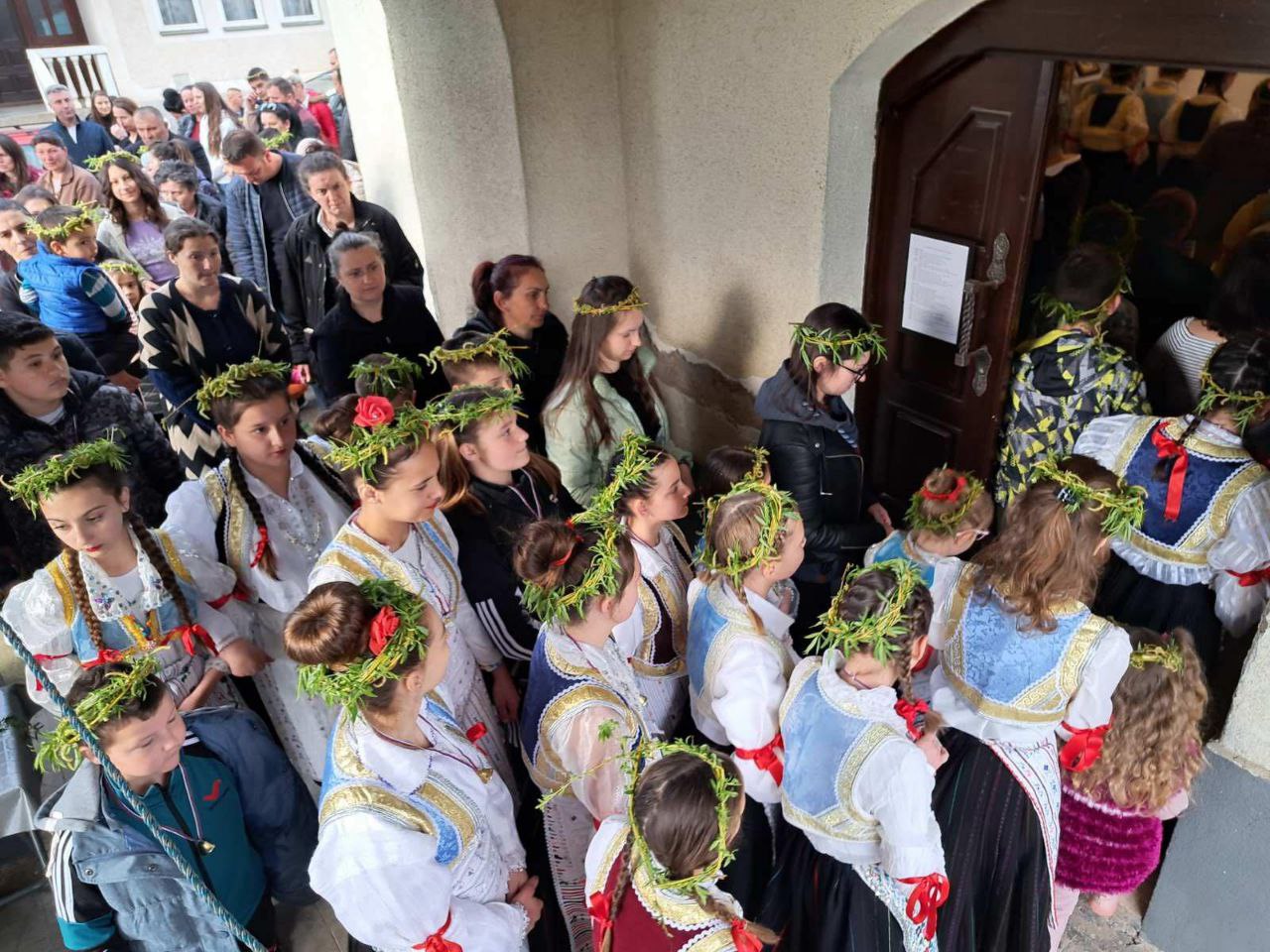 В Косовском Поморавье местные жители вместе со своим любимым владыкой Иларионом, епископом Новобродским, встречали епископа Рашко-Призренского Феодосия и Косовско-Метохийского, в полном соответствии с давними традициями гостеприимства, присущими нашему краю. Особенно волновались самые младшие – детям не терпелось показать владыке разученные танцы и по возможности вовлечь его в хоровод, и, да, немного похвастаться особыми пасхальными нарядами родного края.