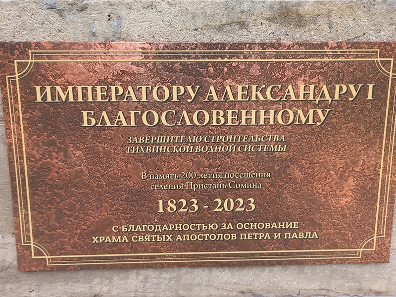Только эти вышеперечисленные факты дают полное основание для установки памятника Александру I в Сомино как завершителю строительства Тихвинской водной системы. Однако у Сомино есть еще один конкретный повод для благодарной памяти Императору. После открытия системы село стало важным транспортным узлом, где водный маршрут пересекался с Ярославским трактом, ведущим на север и восток России, на Урал и в Сибирь. Разросшееся и разбогатевшее село нуждалось в духовном центре. Возникла идея воздвигнуть храм в освящение всей Тихвинской водной системы.
