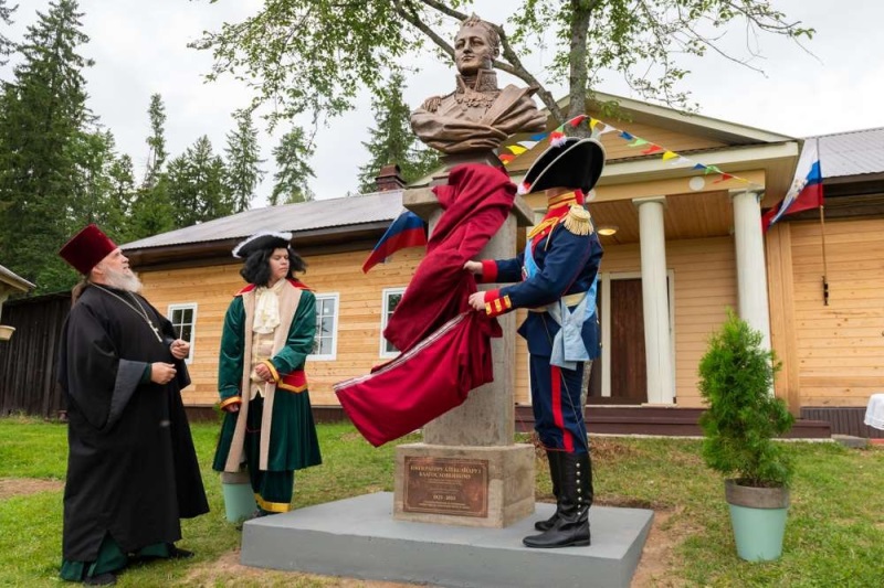 На открытие памятника прямо на площадке перед ним была представлена литературно-музыкальная композиция, в которой была рассказана жизнь Императора и реконструированы эти исторические события. Замечательная композиция была подготовлена детской театральной студией «Лица» Бокситогорской детской Школы Искусств, художественный руководитель и режиссер Иван Смирнов. Зрители увидели уникальную встречу Александра I с Петром I, в которой праправнук отчитался перед прапрадедом о завершении его деяния. Оба «императора» и открыли памятник, сняв багряную завесу.