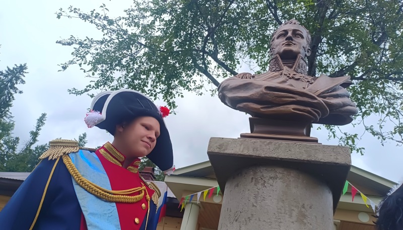 Бюст символично обращен лицом к храму. Государь будто видит ту церковь, которую благословил воздвигнуть. А на постаменте начертаны слова «Императору Александру с благодарностью за основание храма». Для нас особенно понятен его народный титул «Благословенный».