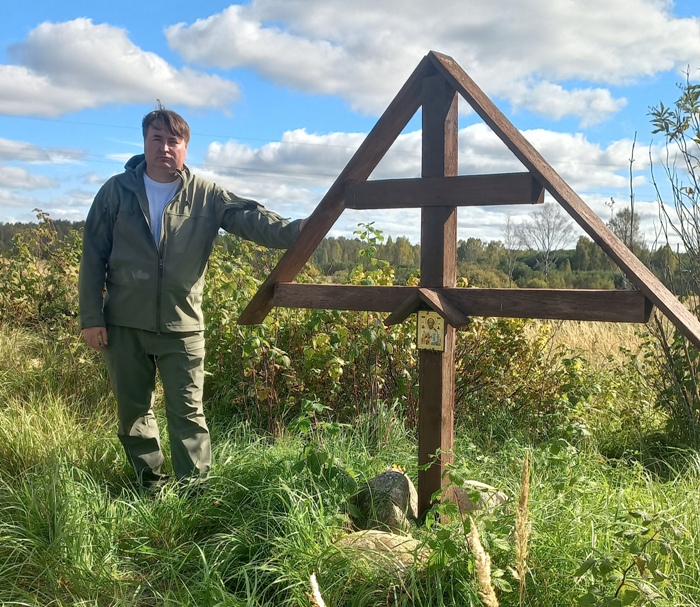 Поклонный крест мы, как могли, подправили уже тогда. А теперь с Евгением привезли и установили новый баннер на поклонный знак. Замечательный коллаж для него сделала член нашей Комиссии, кандидат филологических наук Ольга Блюмина. Обновлённый знак хорошо вписался в саблинский пейзаж. Небольшое вроде бы дело, но не бесполезное, греющее душу. Первыми «зрителями» стали проезжающие на велосипедах местные жительницы. Ездили, видимо, из Романово 12 километров в Степурино в магазин за продуктами или проведать кого в выходной день. «О, а мы только наизусть выучили прошлое стихотворение, теперь новое учить», – пошутили они. На предыдущем баннере были проникновенные строки Тряпкина, посвящённые родной деревне.