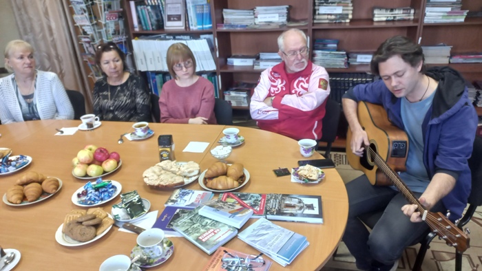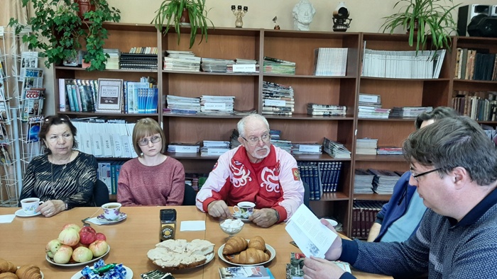 И вот уже снова спешим. Теперь – в Старицу. Здесь в уютном помещении Центральной библиотеки Марина Викторовна Карпухина собрала местных краеведов и библиотекарей. Главная задача – представить третий выпуск альманаха «Неизбывный вертоград», посвящённый творчеству и судьбе Николая Тряпкина. В этом нам помогают, подключившись по видеосвязи, поэт, член Комиссии Григорий Шувалов и уже упомянутая Ольга Блюмина.