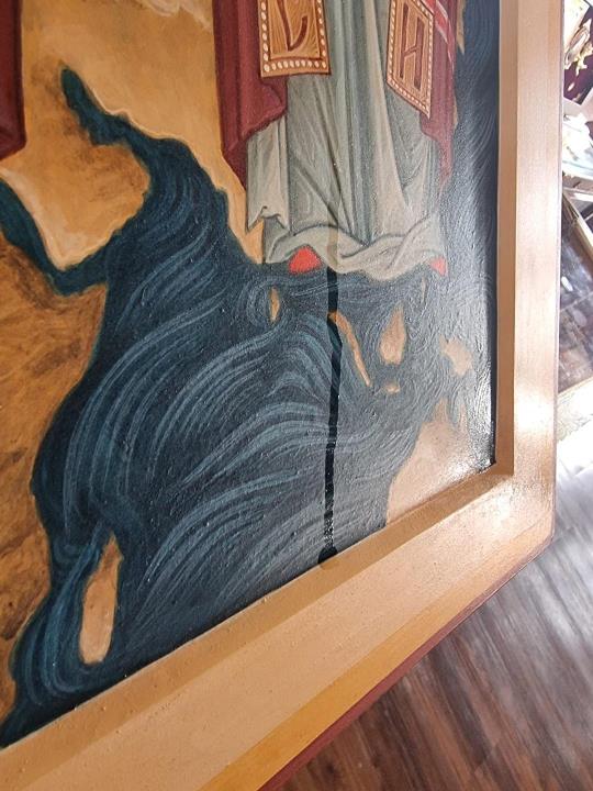 Во время Божественной Литургии 14 сентября, когда празднуется Церковное новолетие, наша икона трех святителей русской эмиграции начала мироточить. Миро появилось на букве «Е» (обозначающей «епископ») на мантии святителя Ионы Ханькоуского и стало стекать вниз.