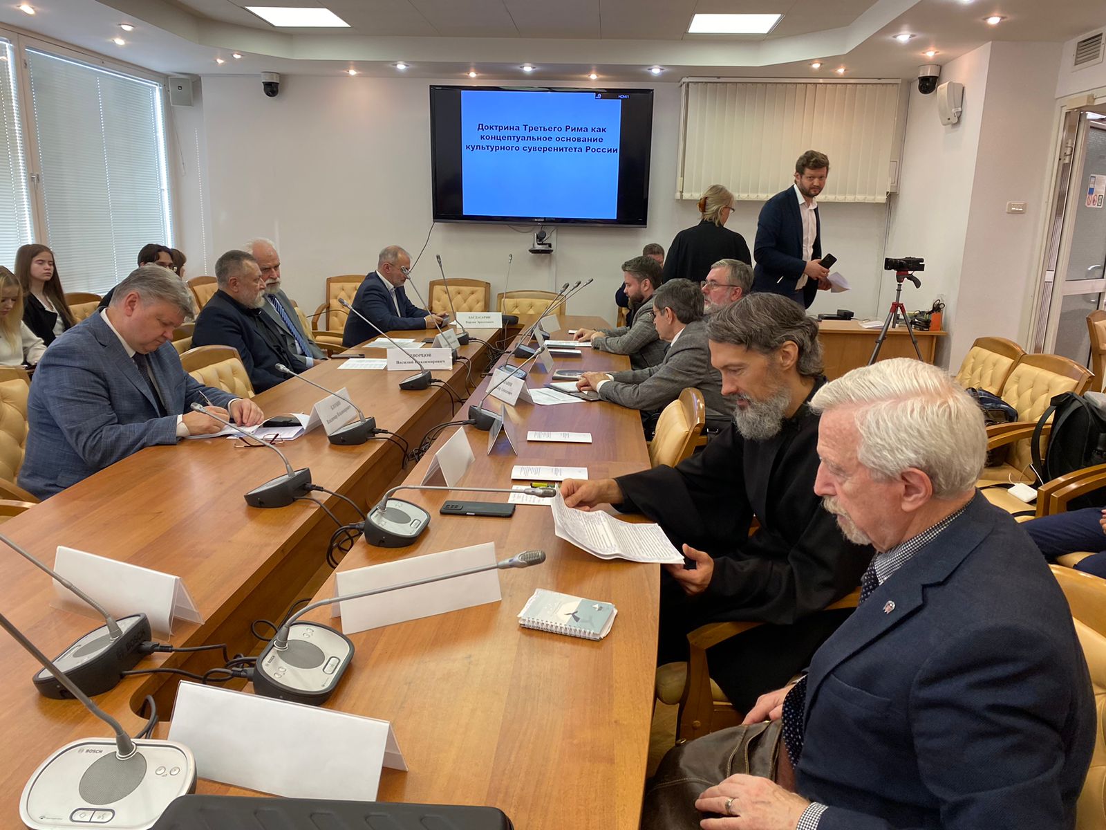 5 октября 2023 г. в Госдуме РФ состоялась Научно-общественная конференция «Москва-Третий Рим» как доктрина культурного суверенитета Российской государственности, посвящённая 570-летию трагедии падения Константинополя. Спикером конференции был Леонтьев В.Г. (секретарь рабочей группы Госдумы «Общество и культура», канд.филос.н.). На конференции выступили Леонтьев В.Г., Багдасарян В.Э. (д.ист.н., член Изборского клуба, проф. МПГУ,), Фёдоров Е.А. (депутат Государственной думы РФ), Реснянский С.И. (д.ист.н, проф. РУДН), Блохин В.В. (д.ист.н., проф. РУДН), Рябцев А.В. (проректор Государственного университета просвещения), Ужанков А.Н. (д.филол.н., проф., академик РАС), Дворцов В.В. (зам. пред. Правления – генеральный директор Союза писателей России), Папаяни Ф.А. (к.т.н., член Изборского клуба и Русского собрания), Рудаков А.Б. (к.ист.н., с.н.с. РНИИКПН им. Д.С. Лихачёва), Самохин А.Е. (журналист, обозреватель, редактор), Фукс А.Н. (д.ист.н., проф.), о.Максим Колесник (протоирей, настоятель храма Новомучеников и исповедников Домодедовских), Шмелева А.В. (к. филол.н., президент АУРЯЛ), Ганич Д.С. (главный редактор газеты «Национальный курс).