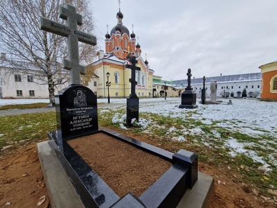 По случаю этого юбилея и почитая добрую память нашего дорогого батюшки, группа духовных чад предложила благоустроить место упокоения игумена Александра изготовлением и установкой надгробного памятника – креста из гранита.