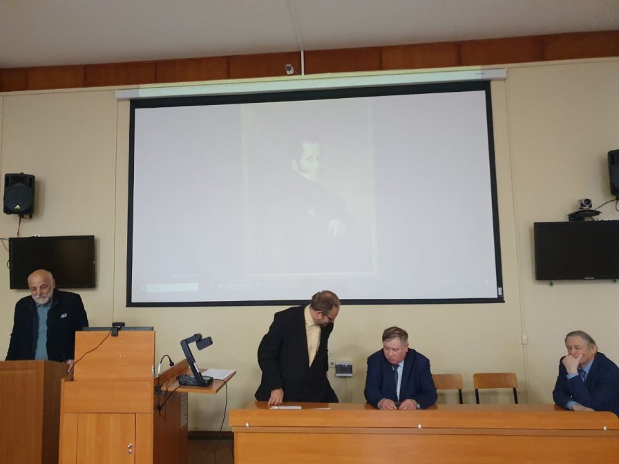 Первое слово было предоставлено заслуженному скульптору России, автору памятника святому равноапостольному князю Владимиру и других памятников Салавату Александровичу Щербакову. В своём выступлении он рассказал о том, как формировался замысел, о том, как он знакомился с нашим университетом, с его факультетами – Биологическим, Филологическим и Историческим, о том, как он проникался университетским духом, как вызревала идея памятника графу Уварову в свете его тесной связи с Петербургом эпохи Императора Александра I.