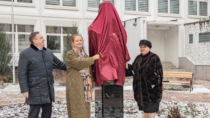 Памятный бюст открыли заместитель Министра просвещения Российской Федерации Анастасия Зырянова, и. о. ректора Академии Минпросвещения России Максим Костенко.