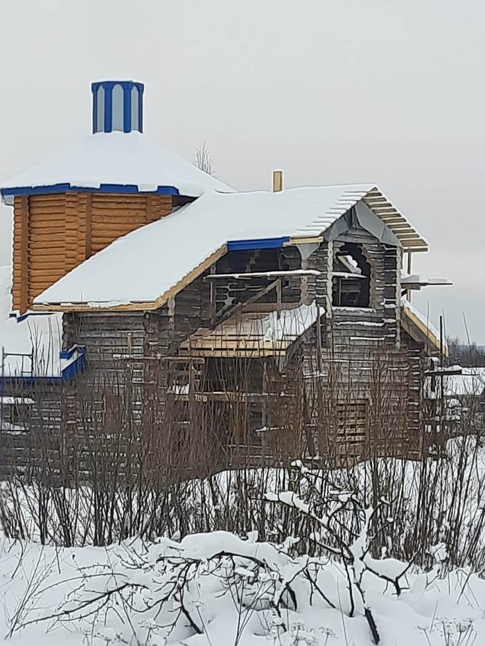 Весной 2021 года началось возведение самого строения храма. Сруб храма деревянный, из брёвен сосны. В этом сезоне начались работы по кровле храма. Однако пришлось приостановить стройку в связи с отсутствием финансирования, так как финансовые возможности прихожан исчерпаны. В связи с последними событиями в мире финансов для завершения строительства не хватило. Поэтому просим поучаствовать всех неравнодушных в нашем проекте. Просим молитвенную и финансовую помощь.