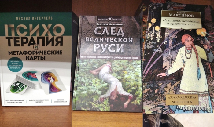 ////Огромное множество «литературы» посвящено «новому» видению язычества. Адепты в венках и сарафанах водят хороводы и ссылаются на познания о ведической Руси и старую-престарую подделку «Велесову книгу», пытаясь при этом спекулировать на русофильстве. Оказывается, и в этой среде тьма тьмущая тех же «психологов». Кстати, многие из них трудятся в школах и, конечно, навязывают детям свои познания и практики./////