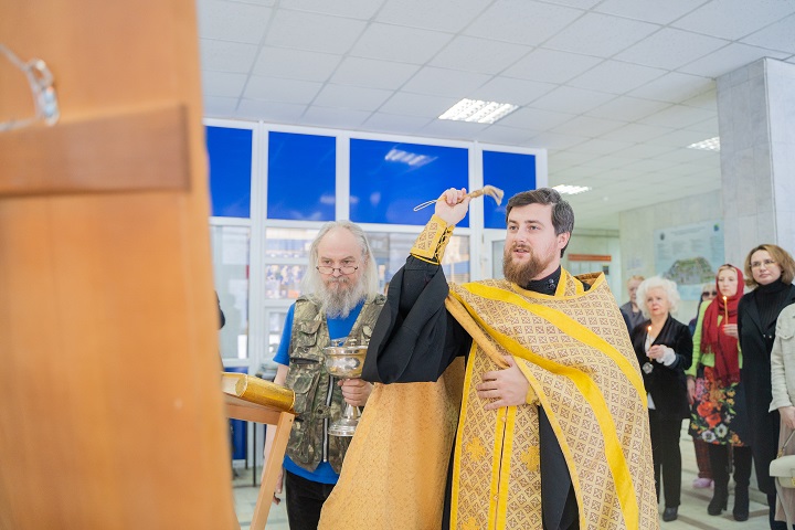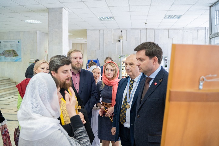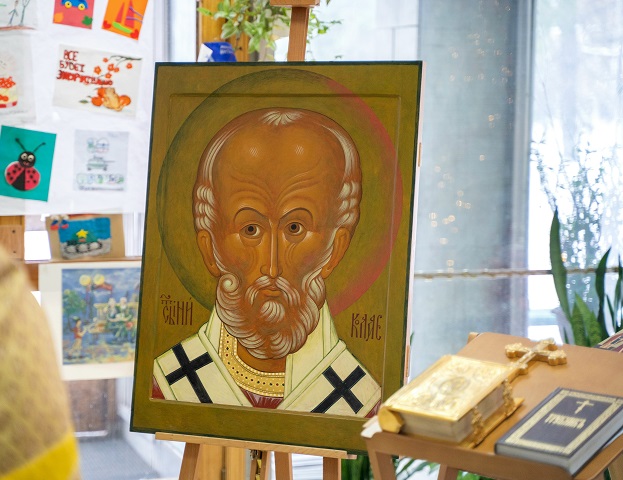 Отец Илия рассказал, что кроме храма Святых Первоверховных апостолов Петра и Павла, связанного с именем Ф.М. Достоевского (венчались его родители, крестили старшего сына, брата Федора Михайловича), на территории госпиталя находился храм Божией Матери «Всех скорбящих Радость», ныне восстанавливающийся. В наше восстановительно-созидательное и военное время очень нужно Божие заступничество и помощь Николая Чудотворца. Священник выразил искреннюю благодарность автору иконы Антону Старцеву, обратив внимание на древнюю традицию исполнения лика святого.