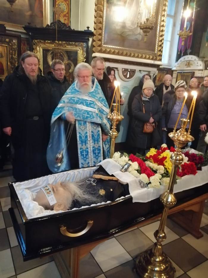 Отпевание новопреставленного раба Божия совершилось в храме Иова Многострадального на Волковском кладбище. Там, на этом кладбище в центре города, рядом с матерью и сыном он и упокоился.