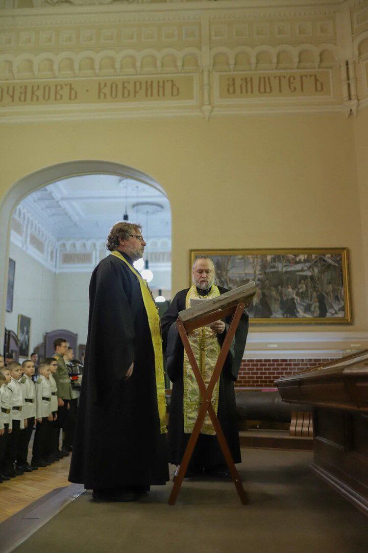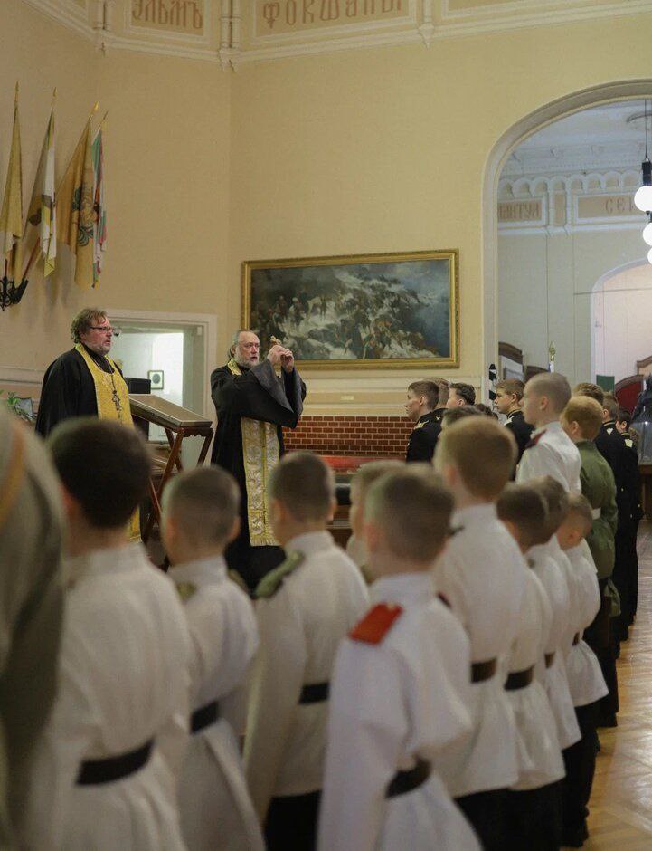 В субботу 17 февраля, в мемориальном музее А.В. Суворова председатель епархиального ОВЦО протоиерей Александр Пелин в сослужении протоиерея Михаила Владимирова отслужили благодарственный молебен, после которого кадеты провели историческую церемонию «Зоря».