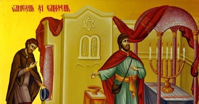 Но фарисей не думал о Боге, а только о себе. Он благодарит Бога, но не за Его чудеса, а за то чудо, каким он сам себе представляется, и о котором не колеблясь возвещает громогласно. Он отличается от других, потому что он лучше их: он не вор, не обидчик, не прелюбодей, ни тем более мытарь — вроде этого, который стоит позади него — там, в глубине храма. Человек, который не может не вызывать отвращения, и который наносит оскорбление его взору. Он не таков. Он постится, он скрупулезно отдает десятину.