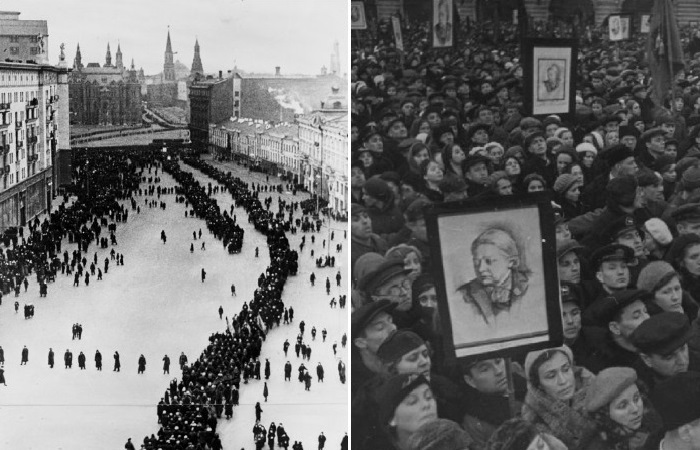 Хоронили ее по самому высшему разряду. Говорят Сталин повелел – денег на похороны Крупской не жалеть! Её гроб был выставлен в Москве, в Колонном Зале Дома Союзов, на громадном постаменте, обрамленном множеством цветов и венков. После кремации тела Крупской в Первом Московском крематории, на Донском кладбище, урну с её прахом торжественно, в почетном карауле, несли по Красной Площади все высшие руководители СССР во главе со Сталиным. После торжественного траурного митинга на Мавзолее Ленина урну с прахом Крупской поместили в нишу Кремлевской Стены, прямо за Мавзолеем ее великого мужа. По этому поводу тоже ходили разговоры, что так Сталин хотел, с одной стороны «успокоить» саму Крупскую, чтобы её прах смотрел прямо на саркофаг ее мужа, а с другой стороны, Сталин хотел таким образом , еще раз, «наказать» Крупскую, которая при жизни не могла спокойно видеть гранитную темно-черную пирамиду, в которой покоилось тело ее Владимира Ильича.
