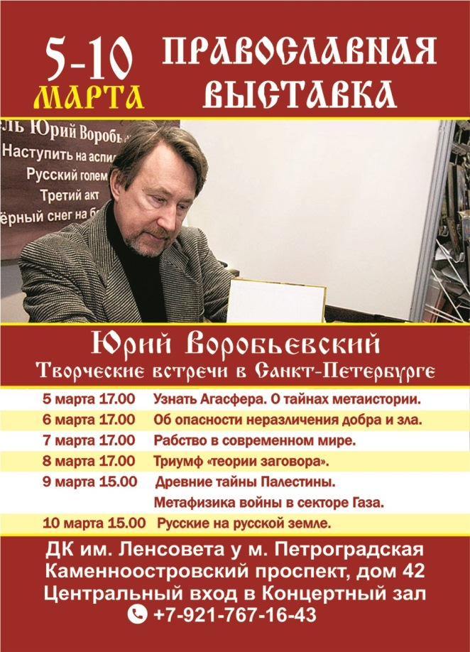17.00 Творческая встреча Юрия Воробьевского «Узнать Агасфера. О тайнах метаистории».