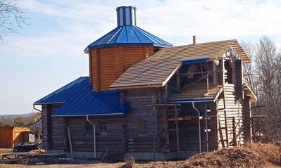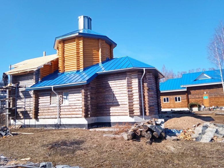 «Весной 2021 года началось возведение самого строения храма. Сруб храма деревянный, из брёвен сосны. В этом сезоне начались работы по кровле храма. Однако пришлось приостановить стройку в связи с отсутствием финансирования, так как финансовые возможности прихожан исчерпаны. В связи с последними событиями в мире финансов для завершения строительства не хватило. Поэтому просим поучаствовать всех неравнодушных в нашем проекте. Просим молитвенную и финансовую помощь.