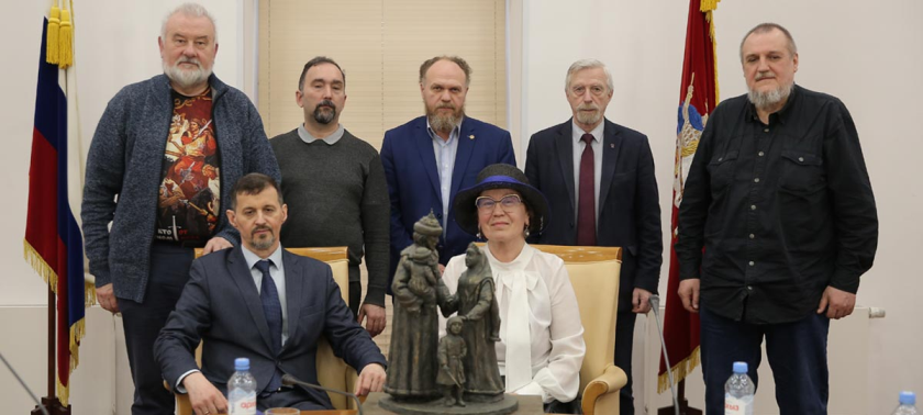 Олег Иванович принёс на конференцию подготовленный им проект памятника семьи Иоанна Васильевича Грозного, на котором изображён ещё молодой Царь Иоанн Васильевич со своей супругой Анастасией и детьми – мальчиками Иваном и Фёдором.
