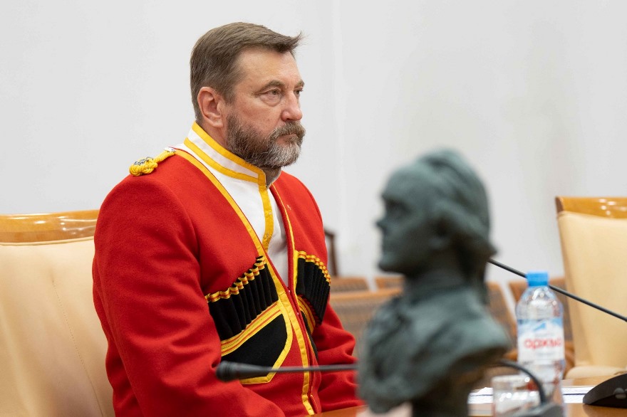 Круглый стол, посвящённый Императору Павлу Петровичу, Леонид Юрьевич открыл с оглашения Приветствия известного церковного деятеля Русской Зарубежной Церкви Архиепископа Монреальского и Канадского Гавриила (Чемодакова).