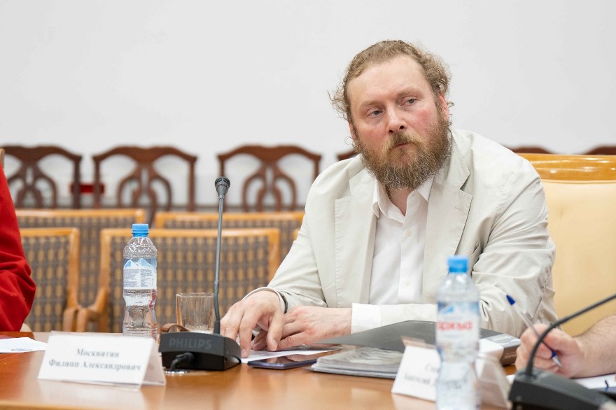 После было предоставлено слово художнику, иконописцу, монументалисту, члену-корреспонденту Российской академии художеств Филиппу Александровичу Москвитину. Он является автором портрета Императора Павла Петровича.