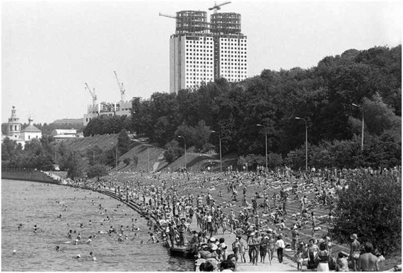 Перед Олимпиадой 1980 года было несколько очень жарких лет, и берега Москва-реки в районе Воробьевых гор были «буквально облеплены купающимися».