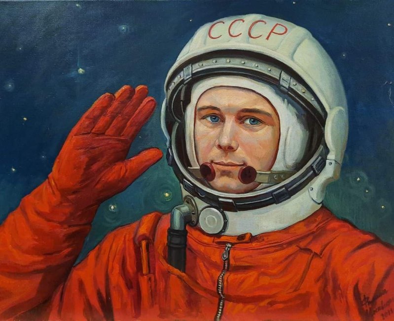 «Например, он переосмыслил в образ Юрия Алексеевича Гагарина: мы привыкли воспринимать его как "рубаху-парня" со знаменитой широкой улыбкой и веселыми глазами, у Москвитина первый космонавт Земли перед отлетом – серьезен, почти печален, только чуть подняты уголки губ. Гагарин, как теперь известно, был верующим христианином, в портрете Москвитина в нем угадывается предчувствие сакральной "встречи с Богом". Увидеть в человеке вечное Божественное начало – признак православного искусства», – писала поэтесса Наталья Лясковская.