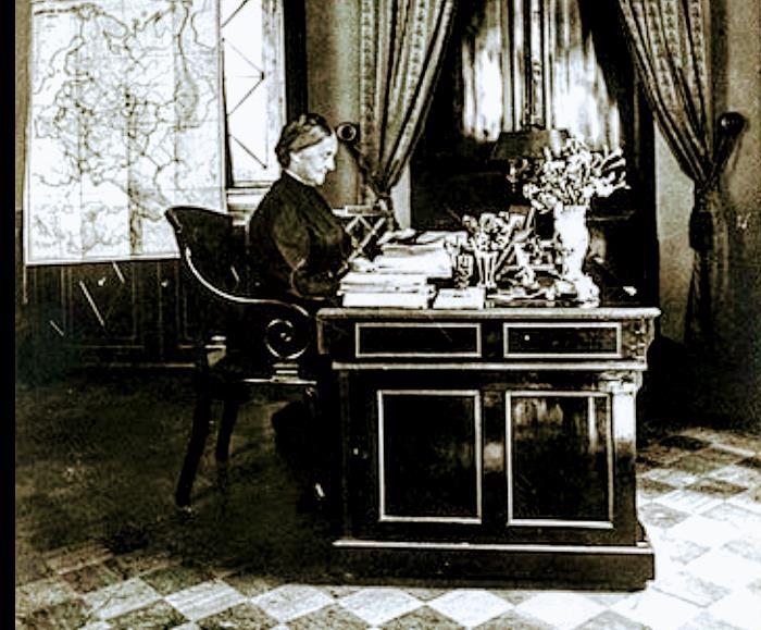 Графиня Прасковья Уварова за столом в кабинете. Муром, с. Карачарово, 1899