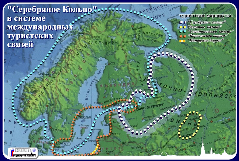 Проект «Серебряное кольцо» системно появился благодаря проведенным урбанистическим проработкам в ФГУП НИИПИ ГРАДОСТРОИТЕЛЬСТВА. Причем сделано это было буквально сразу же по следам публикации известного ярославского журналиста Юрия Александровича Быкова давшего жизни словосочетанию «Золотое кольцо». Проект «Серебряное кольцо России» конечно же занимает значительно большую территорию — по сути он сегодня распространен на все 11 субъектов СЗФО РФ.