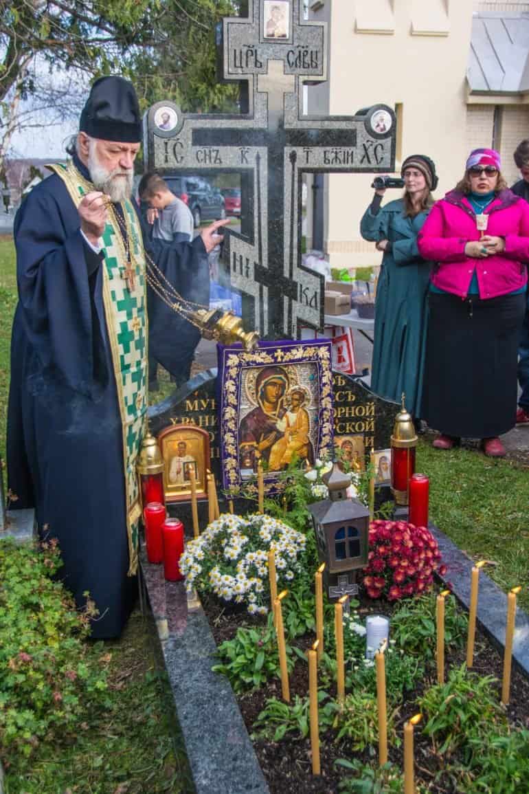 Могила брата Иосифа Муньоса в Свято-Троицком монастыре в Джорданвилле. Панихиду служит почитатель мученика Иосифа прот. Виктор Потапов.