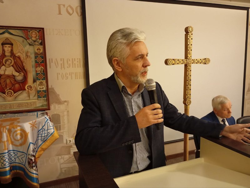Следующим докладчиком стал Забурниягин Сергей Викторович, член Императорского Палестинского общества, общественный деятель, меценат, путешественник, из гор. Пушкино Московской обл. Он выступил с докладом «Миссия Корсунского Царского Креста».