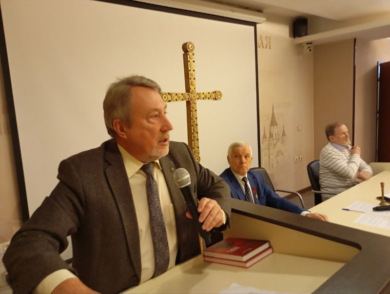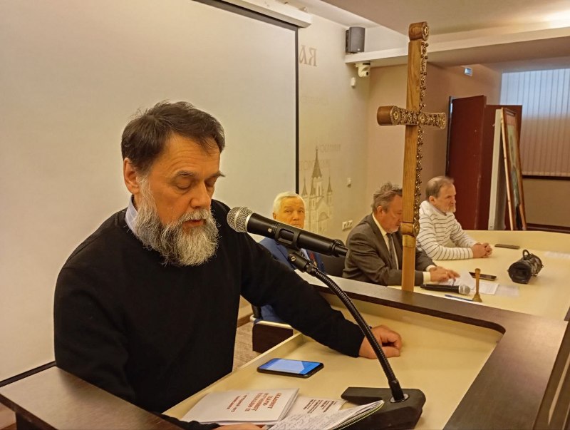 Доклад историка Леонида Евгеньевича Болотина «Книги владыки Иоанн (Снычева): Русь Соборная и одоление нынешней смуты» был посвящен обзору трудов митр. Иоанна Санкт-Петербургского и Ладожского, которому исполнилось в этом году 29 лет со дня упокоения (+2-11-1995). В контексте доклада Л.Е. Болотин рассказал о своих единомышленниках (в числе которых были П.Г. Петин, К.Ю. Душенов, А.Д. Степанов), работавших под началом Владыки Иоанна. Митр. Иоанн привлекал к сотрудничеству многих историков, беседовал с ними, благословлял проводить исследования.