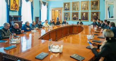 В пятницу, 15 ноября, в Портретном зале епархиального управления прошла встреча митрополита Санкт-Петербургского и Ладожского Варсонофия с представителями патриотических общественных организаций, сообщает сайт Санкт-Петербургской митрополии.
