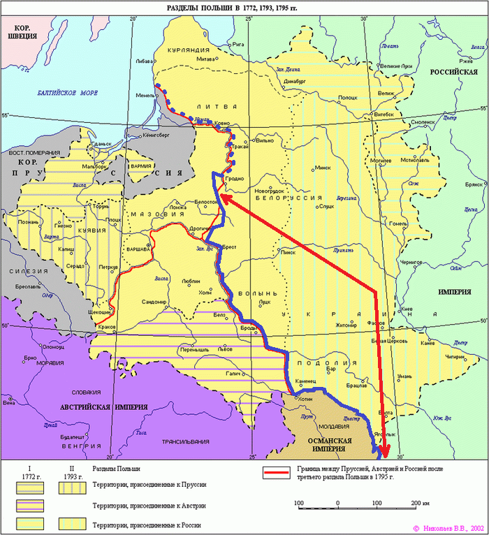 Граница-1800 — это также предложение... Варшаве получить со временем вменяемые границы. Если польский народ найдёт в себе силы покончить с извечной русофобией. Что значит «вменяемые польские границы»? Удивительно, но в Польше различают три исторических варианта своих национальных границ (не считая четвертого — имперского, Речи Посполитой).
