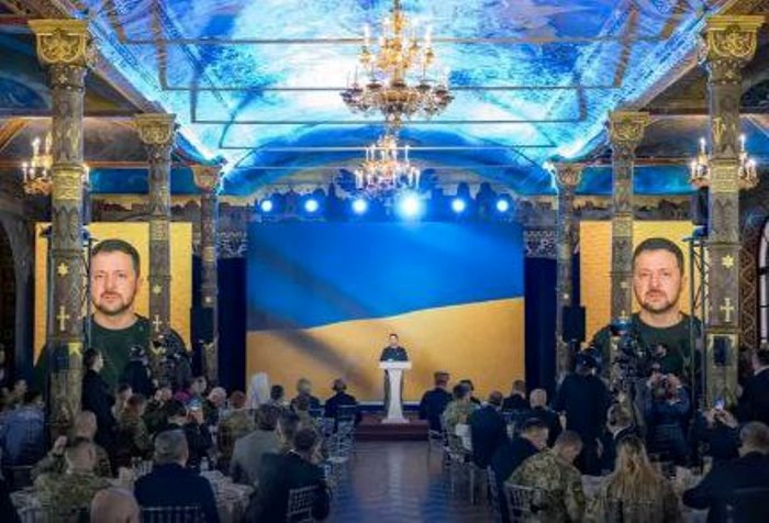6 декабря 2024 года, в День Вооруженных сил Украины, Владимир Зеленский выступил в Трапезном храме на «военном молитвенном завтраке», – сообщает сайт президента (главы киевского режима). Для его выступления власти построили помост, а присутствующие расположились за столиками. По обе стороны помоста разместили экраны, на которых транслировали изображение Президента крупным планом.