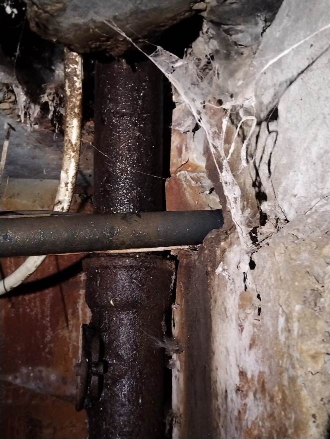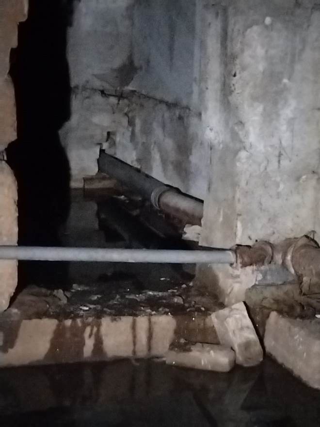 Как видно на фото, вода сохраняется, что в зимний период угрожает разрушением труб, обесточиванием дома, подмывом фундамента.