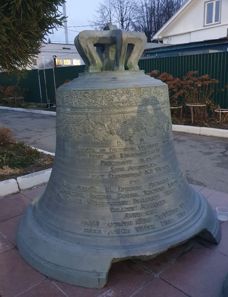 Кстати, во дворе собора стоит уникальный колокол, история которого вносит интересный штрих в отношения Церкви и Государства в советское время. Надпись гласит, что колокол – это трофей из поверженного Кенигсберга, он был специально доставлен именно для кафедрального собора в Чебоксарах, который вернули верующим в 1943 году. Но где Кенигсберг и где Чебоксары?! Но кто-то распорядился доставить колокол именно сюда. Возможно, это связано с тем, что верующие Чувашии собрали существенную сумму на создание таковой колонны «Дмитрий Донской», им даже посылал благодарственную телеграмму лично Сталин. Увы, не то при транспортировке, не то при подъеме на колокольню колокол лопнул, так и стоит во дворе, напоминая об этой загадочной странице истории церковно-государственных отношений.