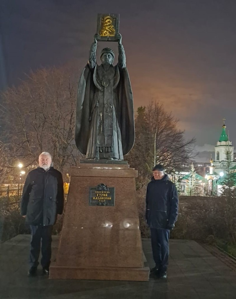 С историком С.Н. Кодыбайкиным у памятника святителю Гурию