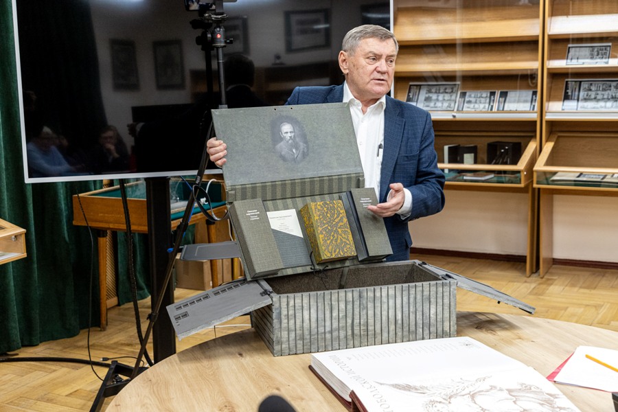 Торжество, происходящее в небольшом актовом зале, было камерным, негромким, как и положено в библиотеке. Хотя смыслы, которые озвучивали выступавшие гости, друзья и попечители Фонда, несли в себе мощную идеологическую подоплеку, касающуюся и самого благотворительного мероприятия, и духовной оценки бесценного дара, и работы делателей книги – издателей и художников. Важность события была отмечена в заглавном выступлении директора библиотеки Ольги Владимировны Скворцовой, рассказавшей об истории книгохранилища, о его филиалах, о форме библиотечного обслуживания, о радости сотрудничества с фондом «Возрождение Тобольска», который таким богатым подарком отметил 310-летие дружественной ему библиотеки.