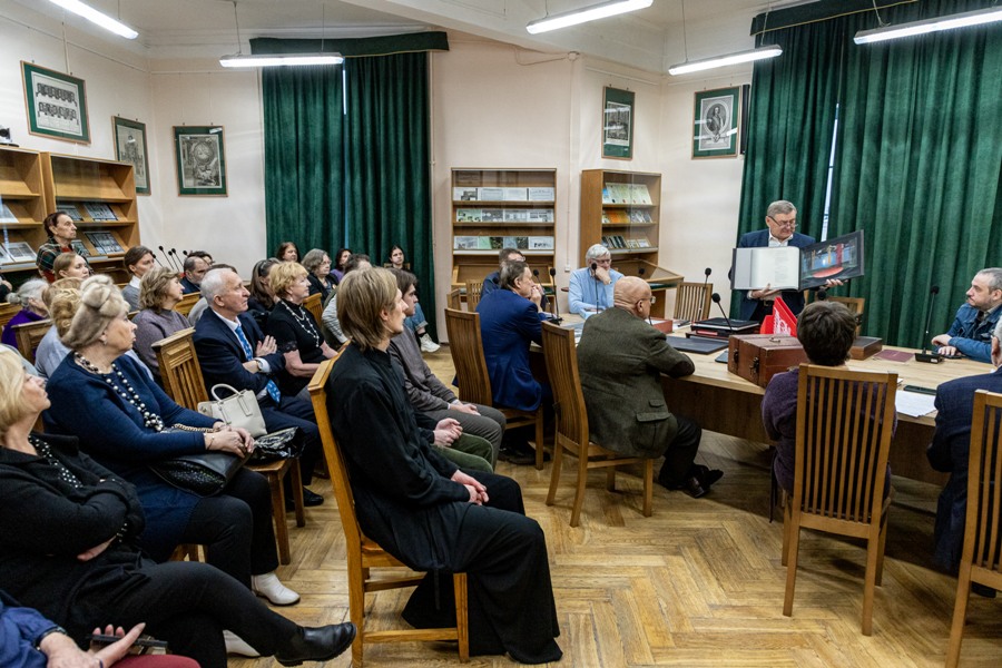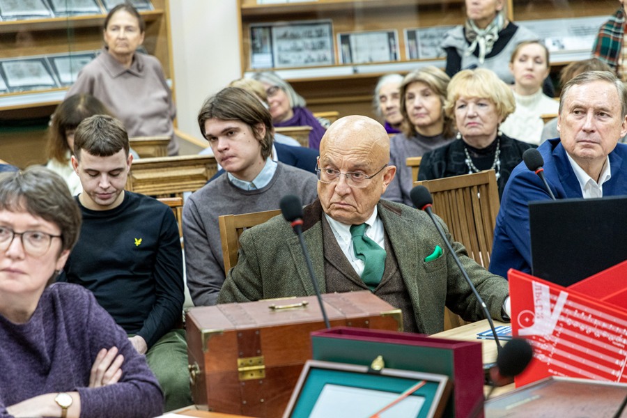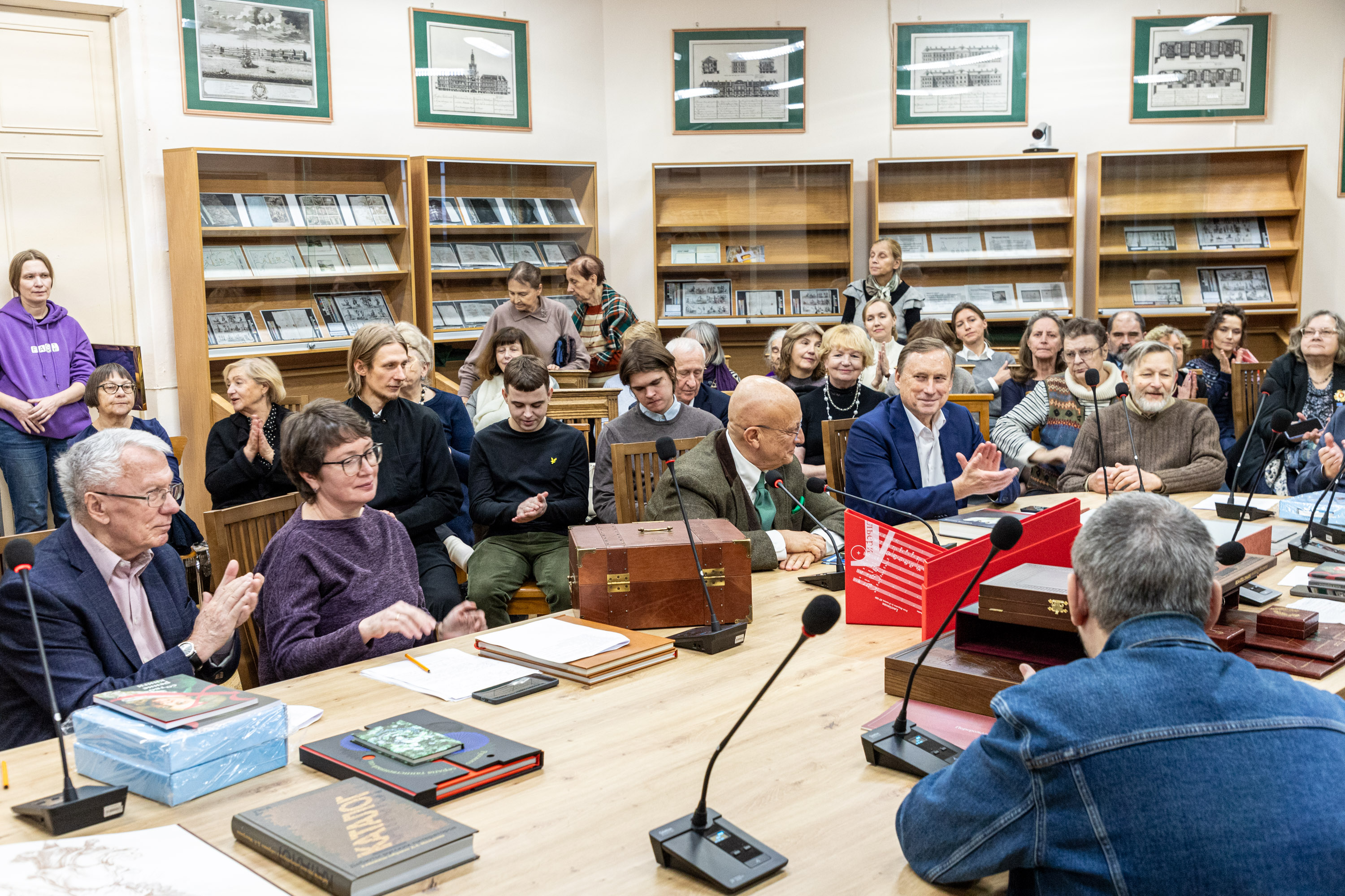 Символично, что мероприятие проходило в здании, находящемся среди архитектурных петербургских красот, можно сказать, в присутствии Невы, на берегу которой оно расположено. Державная река, как ее характеризовал Пушкин, была в этот день аристократично сдержана, как и положено старейшему участнику подобного события. Она помнила времена, когда этому книжному хранилищу были дарованы коллекции таких известных в Российской империи библиофилов как историк В.Н. Татищев, слависты А.И. Яцимирский и И.И. Срезневский, исследователь В.Г. Дружинин и др. Но сегодня звучали имена современных художников, авторов, меценатов и дарителей. Книги из XXI века, наследуя вековую имперскую традицию, передавались другим векам и новым поколениям во благо служения Отечеству.